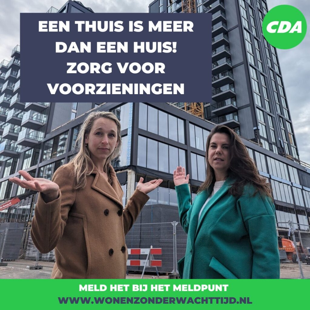 In het hele land ligt de focus op het bouwen van huizen. Die zijn ook hard nodig. Tegelijk zien we dat bij veel bouwplannen onvoldoende rekening wordt gehouden met voorzieningen. Een huis is nog geen thuis. Dat wordt het pas als je in je buurt terecht kan op de kinderopvang of school, bij de huisarts of op de sportvereniging. Het CDA vindt dat voorzieningen net zo belangrijk zijn als de huizen die gebouwd moeten worden. Iedereen heeft recht op wonen zonder wachttijd voor voorzieningen.